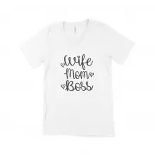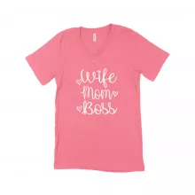 Use our battle tested marketing materials for Wife Mom Boss Women's Jersey V-Neck T-Shirt