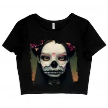 Skeleton Girl Women's Cropped T-Shirt - Gothic Crop Top - Artwork Crop Tee Shirt