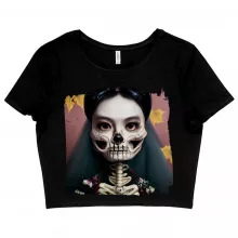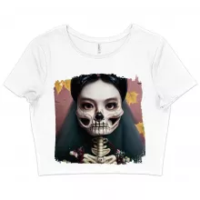 Use our battle tested marketing materials for Cool Skeleton Women's Cropped T-Shirt - Floral Crop Top - Halloween Print Crop Tee Shirt