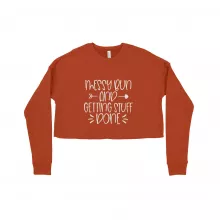 Use our battle tested marketing materials for Messy Bun Getting Stuff Done Women's Cropped Fleece Sweatshirt