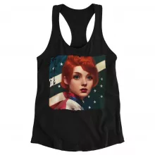 Use our battle tested marketing materials for Girl Red Hair American Flag Racerback Tank - Art Tank - Cool Workout Tank