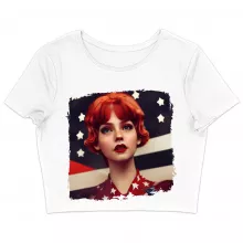 USA Flag Print Women's Cropped T-Shirt - Girl Art Crop Top - Patriotic Crop Tee Shirt