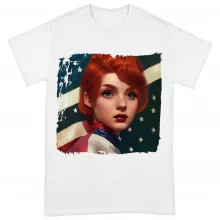 Use our battle tested marketing materials for Girl Red Hair American Flag Heavy Cotton T-Shirt - Art Tee Shirt - Cool T-Shirt