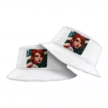 Use our battle tested marketing materials for Girl Red Hair American Flag Bucket Hat - Art Hat - Cool Bucket Hat