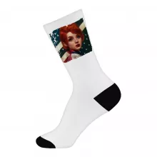Use our battle tested marketing materials for Girl Red Hair American Flag Socks - Art Novelty Socks - Cool Crew Socks